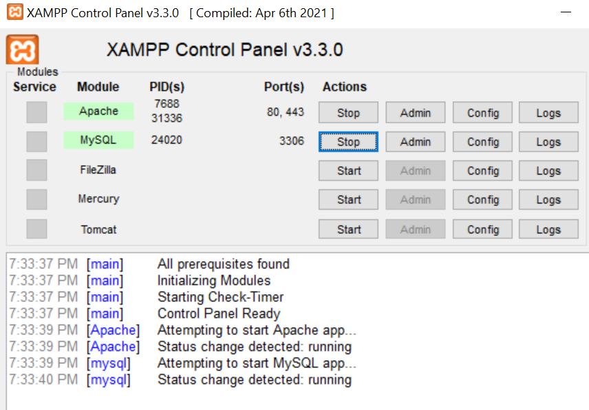 Langkah pertama: Aktifkan service xampp melalui xampp control panel